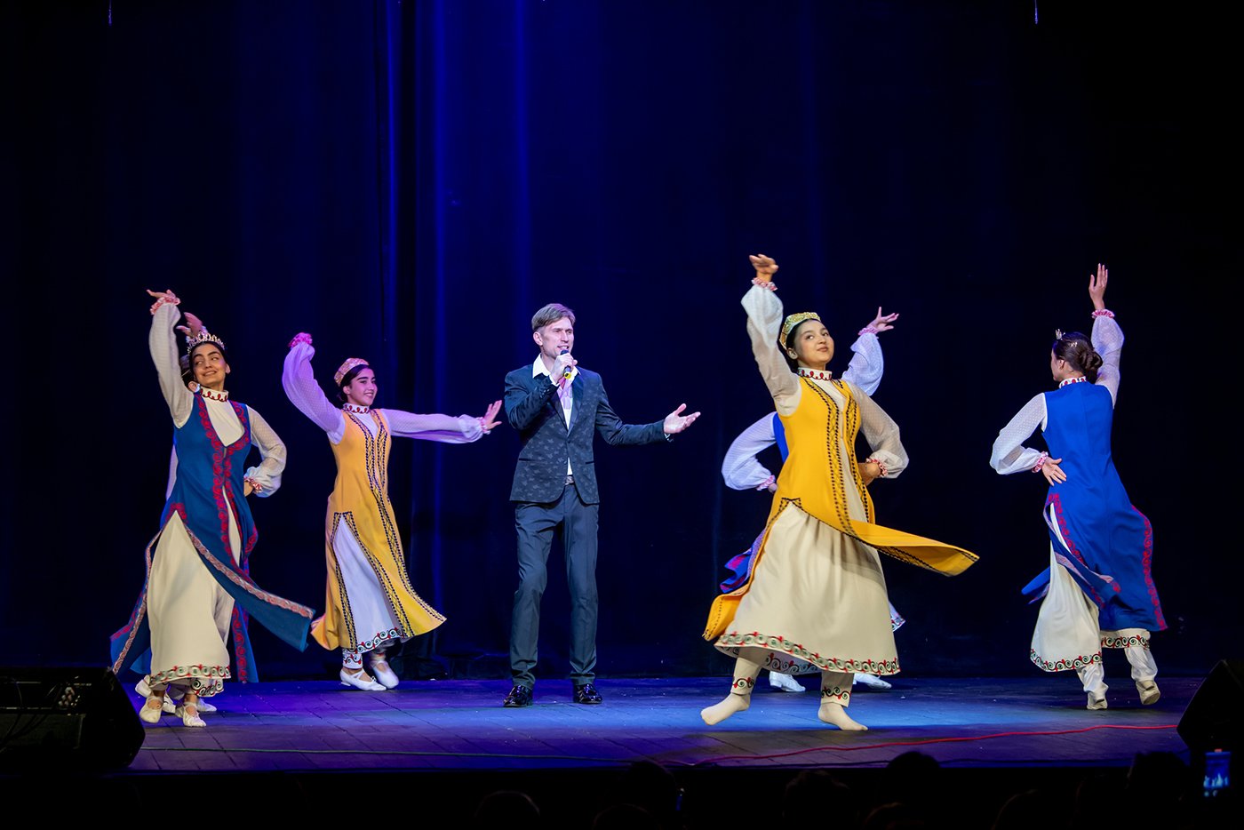 Денис Мокроусов – арт-директор круизной компании «Донинтурфлот», участвует в концерте уже третий год. Не знаем, станет ли Денис старожилом концерта, но сегодняшняя песня в его исполнении – точно старожил, это 1957 год. А помогает Денису ансамбль народного танца «Нур».