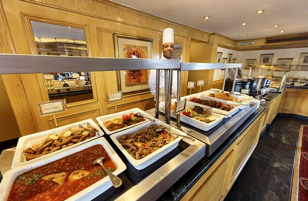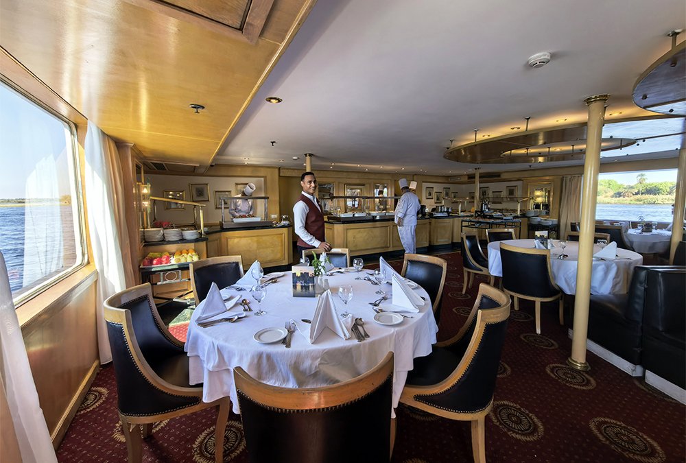 Теплоход Jaz Al Qassida имеет статус 4*, но кормят туристов на все «пять»: трижды в день повара подают вкусную свежую еду. В каждой трапезе обязательно присутствуют европейские и местные кушанья: несколько блюд из мяса и рыбы, салаты, закуски, свежеиспеченные лепешки и булочки. На десерт – несколько видов пирожных и тортов, восточные сладости.