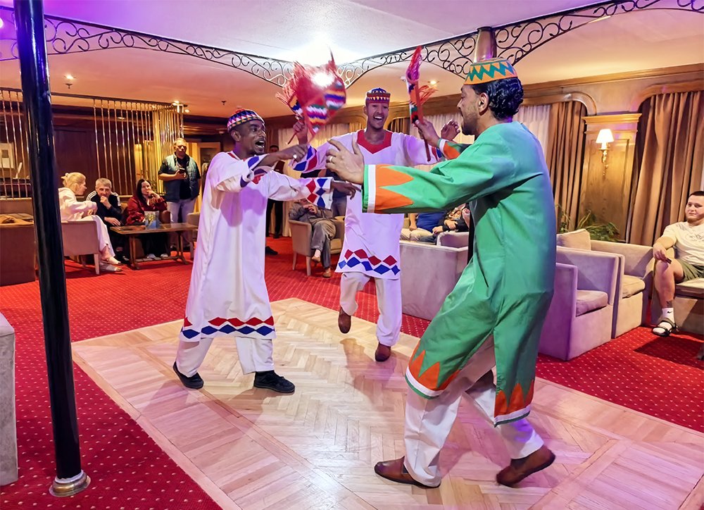 В гостиной устраивают концерты: для нас выступали нубийские танцоры и музыканты, умеющие расшевелись даже уставшую после экскурсий публику: с ними и хороводы водят, и даже немного учатся говорить на нило-нубийском языке.