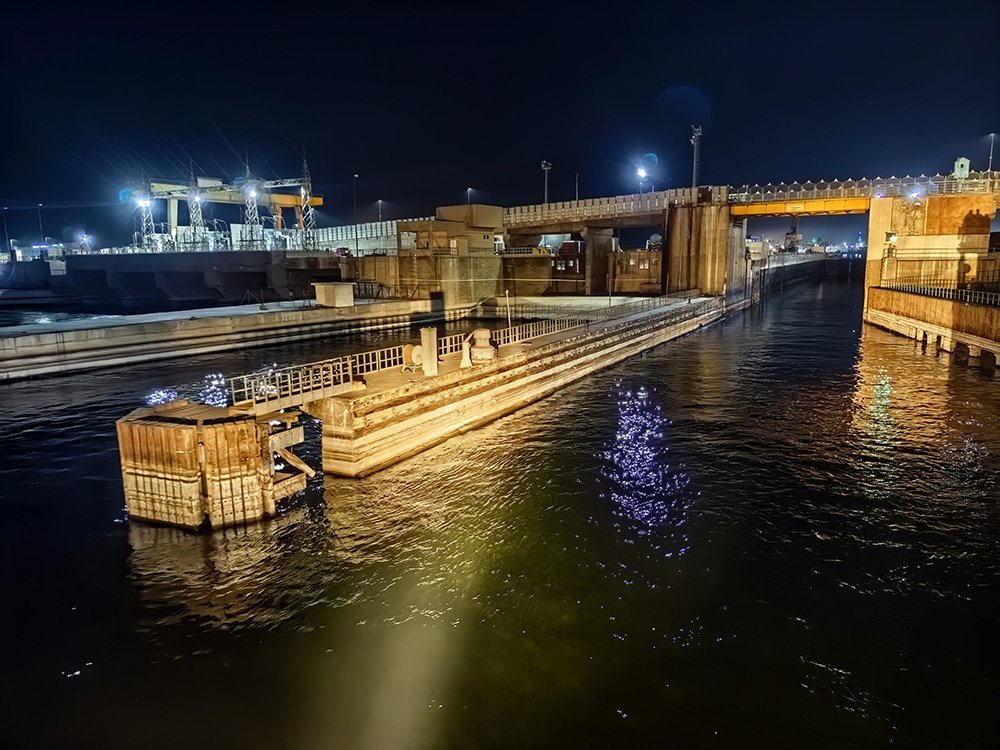 Вечером второго дня пассажиров приглашают на палубу – понаблюдать за работой шлюза в городе Эсна.