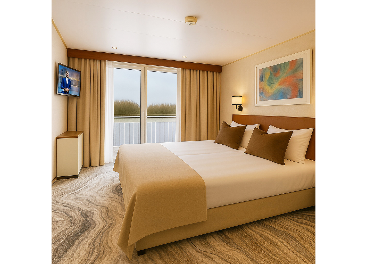 Круизы пройдут на комфортабельном четырехпалубном теплоходе CruceNova. Гостям предлагаются 92 двухместные каюты со стильным интерьером и эстетичными французскими балконами. На борту – панорамный лаунж, ресторан, венское кафе, библиотека, фитнес-зона, сауна.