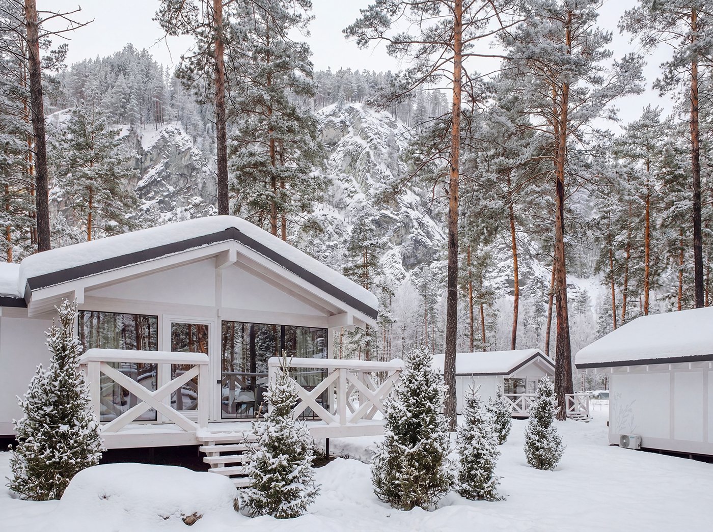 На территории обустроено 36 комфортабельных шале с террасами. Благодаря панорамным окнам гостям открываются магические виды алтайской природы.