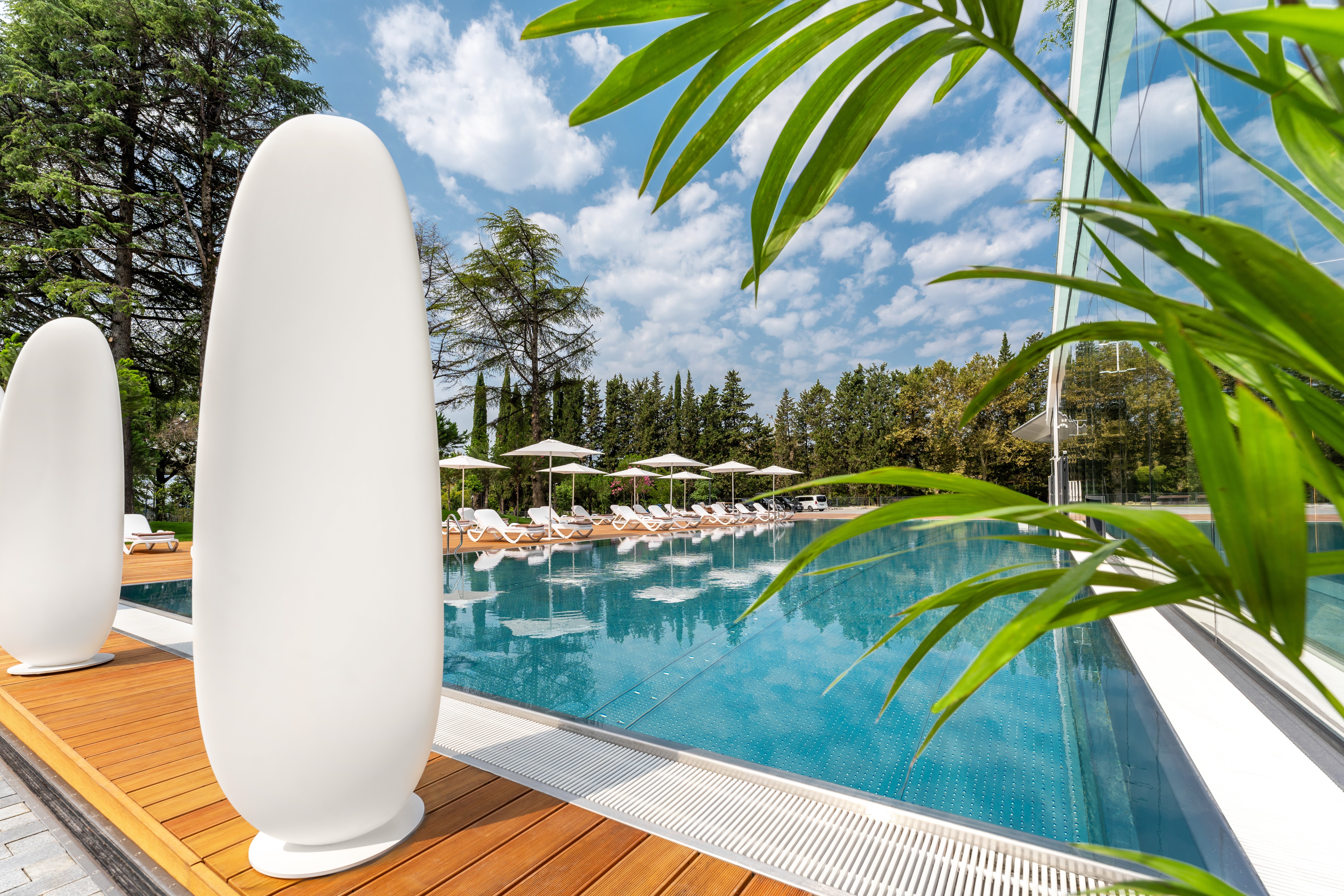 Инфраструктура санатория включает собственный пляжный клуб, круглогодичный акватермальный комплекс с бассейнами с минеральной водой, многоуровневый фитнес-центр и йога-террасу. Есть бювет с шестью видами минеральной воды, салон красоты, зоны для отдыха и профессионально организованные детские пространства.