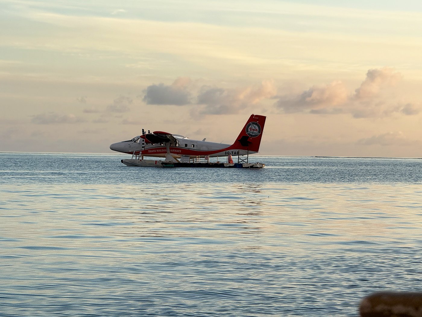 До отеля Sun Siyam Iru Vely, расположенного в 150 км к югу от Мале, мы добирались на гидроплане компании Trans Maldiviana. Доставка туристов у перевозчика и сотрудничающих с ним отелей организована четко – их встречают с табличкой отеля в зале прилета, подводят к стойке регистрации, забирают чемоданы и взвешивают ручную кладь. Затем выдают посадочные талоны отвозят на автомобиле в терминал внутренних линий Velana, что занимает не больше 10 минут.