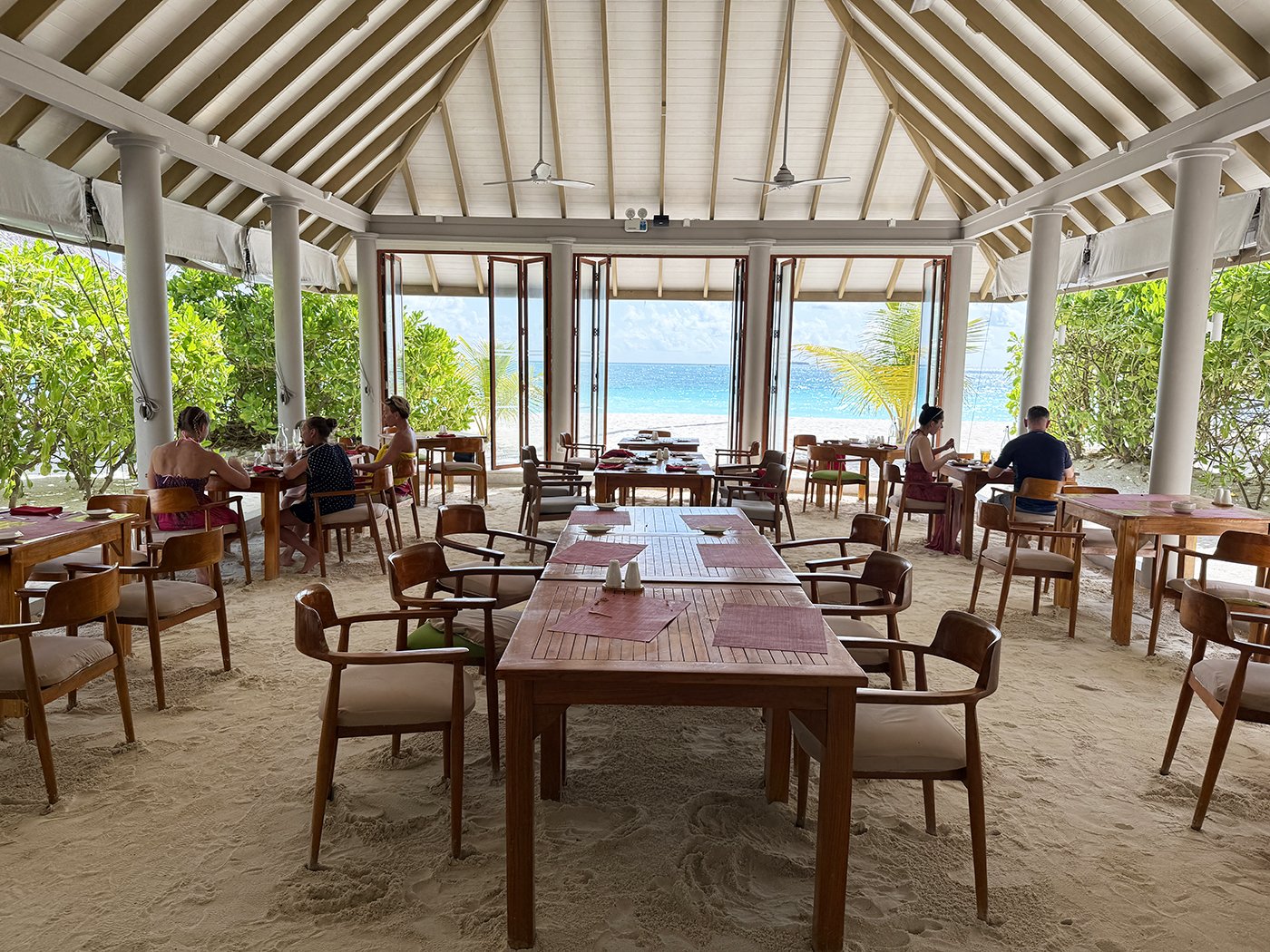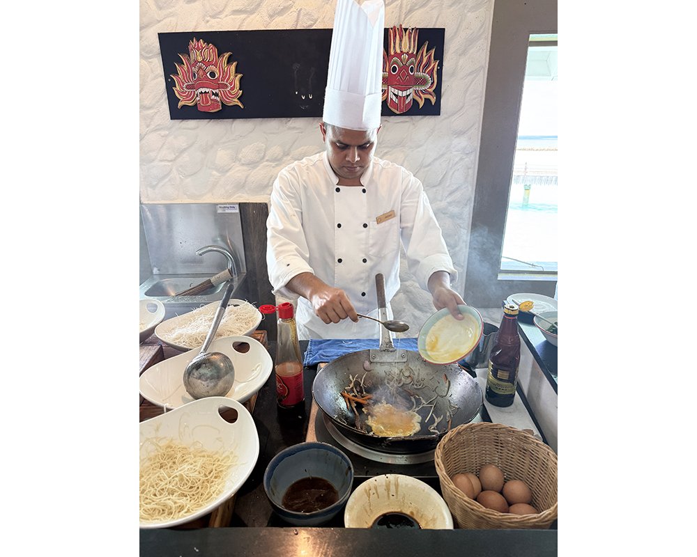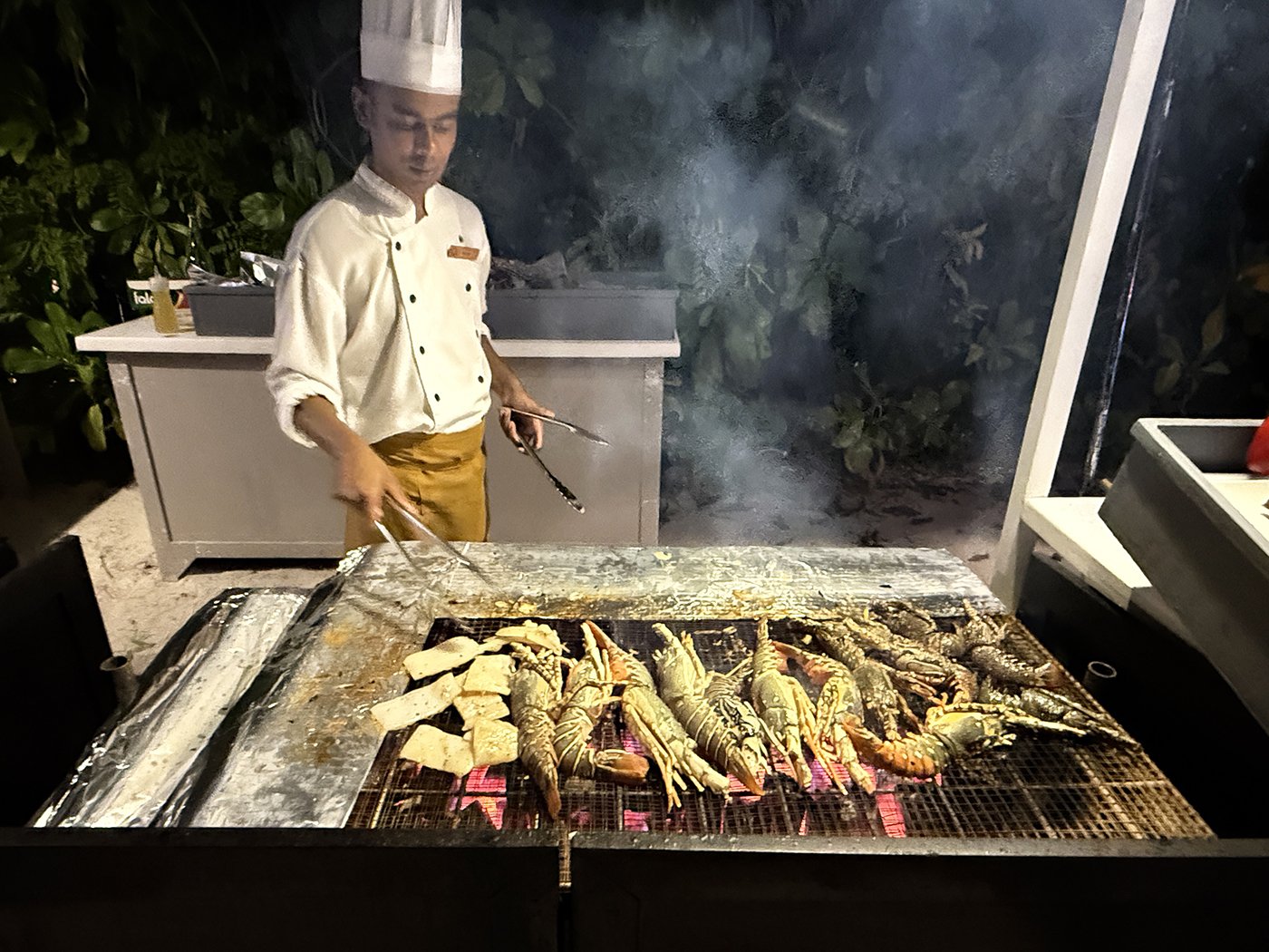 Раз в неделю в обоих отелях проходит Мальдивский вечер, когда можно попробовать традиционную мальдивскую кухню. Вряд ли кого-то удивит, что местные блюда тоже в основном рыбные, а для гарниров часто используются растущий здесь кокос, лайм, сладкий картофель ямс. Популярны различные сочетания рыбы с рисом, среди основных приправ – чеснок, карри, лук, имбирь, перец чили, тот же лайм.
