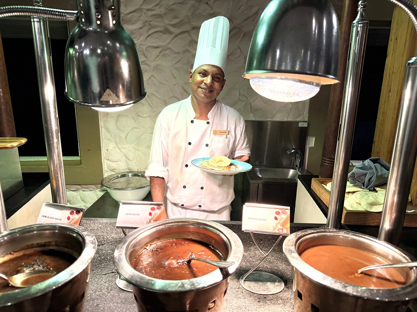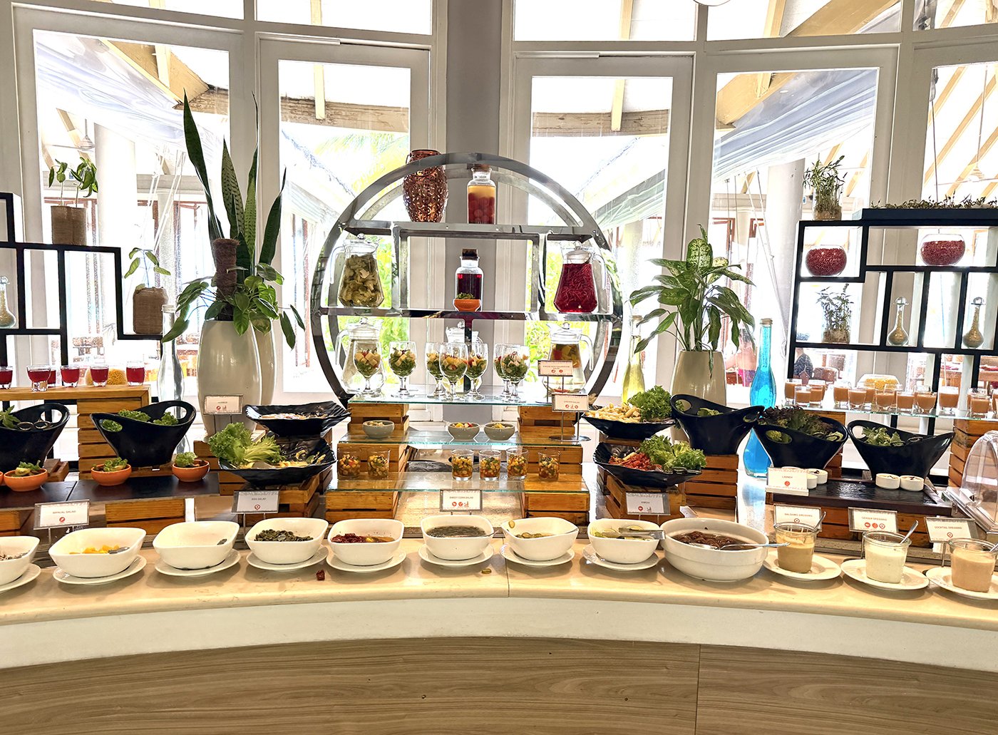 Изюминка отеля Iru Veli – хорошая выпечка. На завтрак в Aqua Orange пекут отличные круассаны с начинкой и без и очень вкусные булочки из слоеного теста с корицей, изюмом, шоколадом, заварным кремом с фруктами и множеством других начинок. На обед и ужин крайне рекомендуем попробовать коронное блюда шефа-кондитера – муссовые пирожные с фруктовыми вкусами. Они получаются отменными.