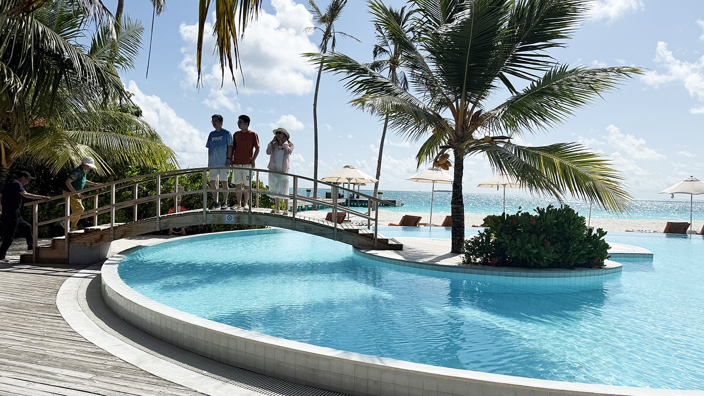 Всего в отеле Sun Siyam Iru Vely 125 вилл двух типов – расположенных на пляже с собственным бассейном и водных, установленных на сваях над океаном. У каждого вида размещения есть свои плюсы. Пляжная вилла лучше подойдет туристам с маленькими детьми, а если вы любитель начинать утро с купания в океане, стоит выбрать размещение на воде. Как рассказывает наш персональный батлер Шариан, китайские туристы очень любят пробовать оба варианта – покупают пакет, включающий четыре дня в каждом отеле Sun Siyam в атолле Дхаалу и проводят по два дня в каждом типе виллы. Китайских туристов в обоих отелях действительно немало.