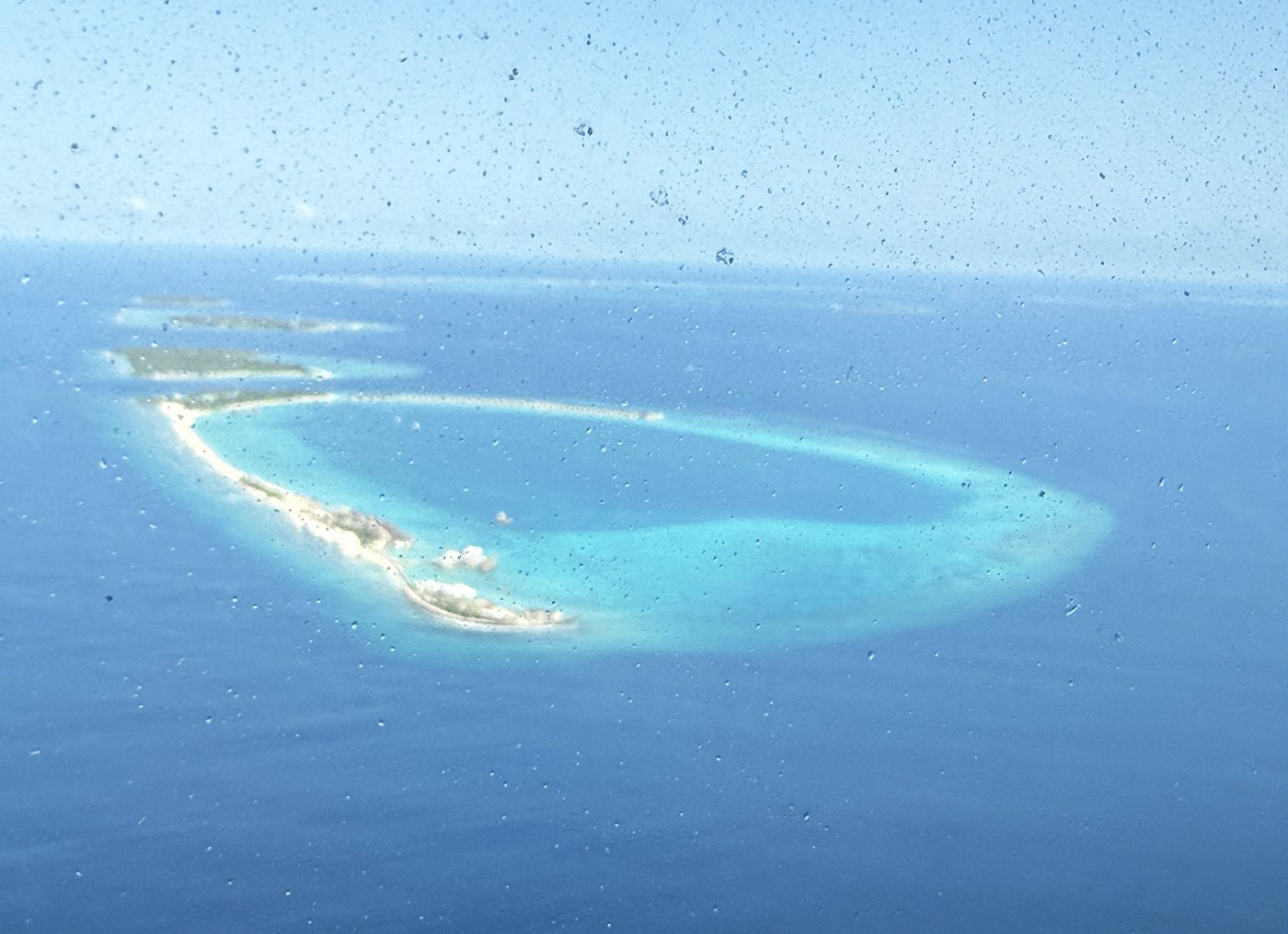 Советуем при регистрации на рейс брать место в самолете у окна – когда лайнер начинает снижаться над Мальдивами, сразу хочется достать телефон и непрерывно фотографировать бесконечную синюю гладь с постепенно растущими белыми кругами атоллов на ней.