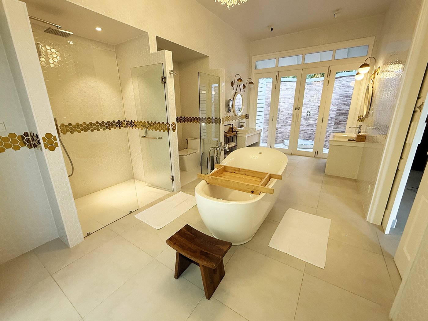 Пляжная вилла №777 – огромная, с двумя спальнями, двумя огромными ванными и большой гостиной – считается лучшей на курорте. Это идеальный вариант размещения для семьи с двумя или тремя детьми либо двух пар друзей. Благодаря высоченным потолкам здесь не жарко даже без кондиционера.